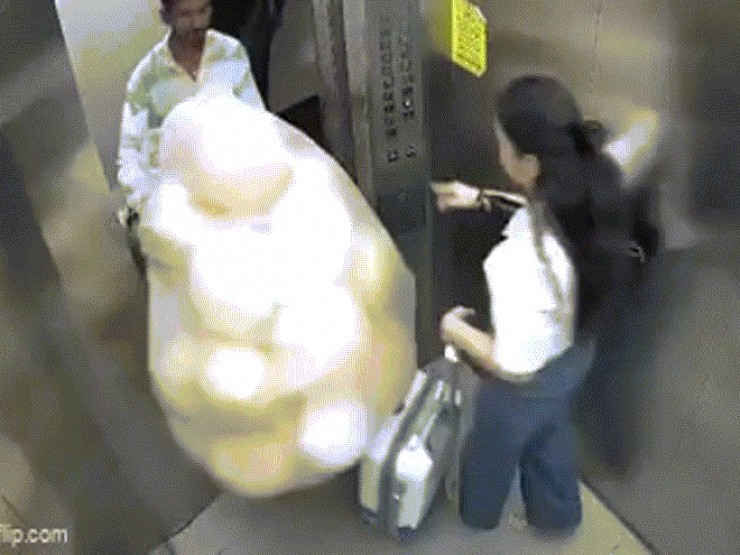 | Chùm bóng bay phát nổ như quả cầu lửa trong thang máy | |