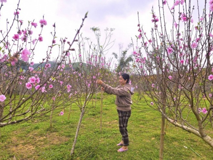 | Đào nở đỏ rực trước Tết, chủ vườn đứng ngồi không yên | |