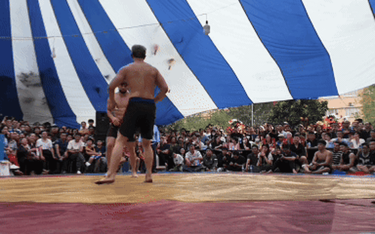 | Đô vật Zakhar Dzmitrychenk 94kg khuấy động hội vật làng Triều Khúc | |