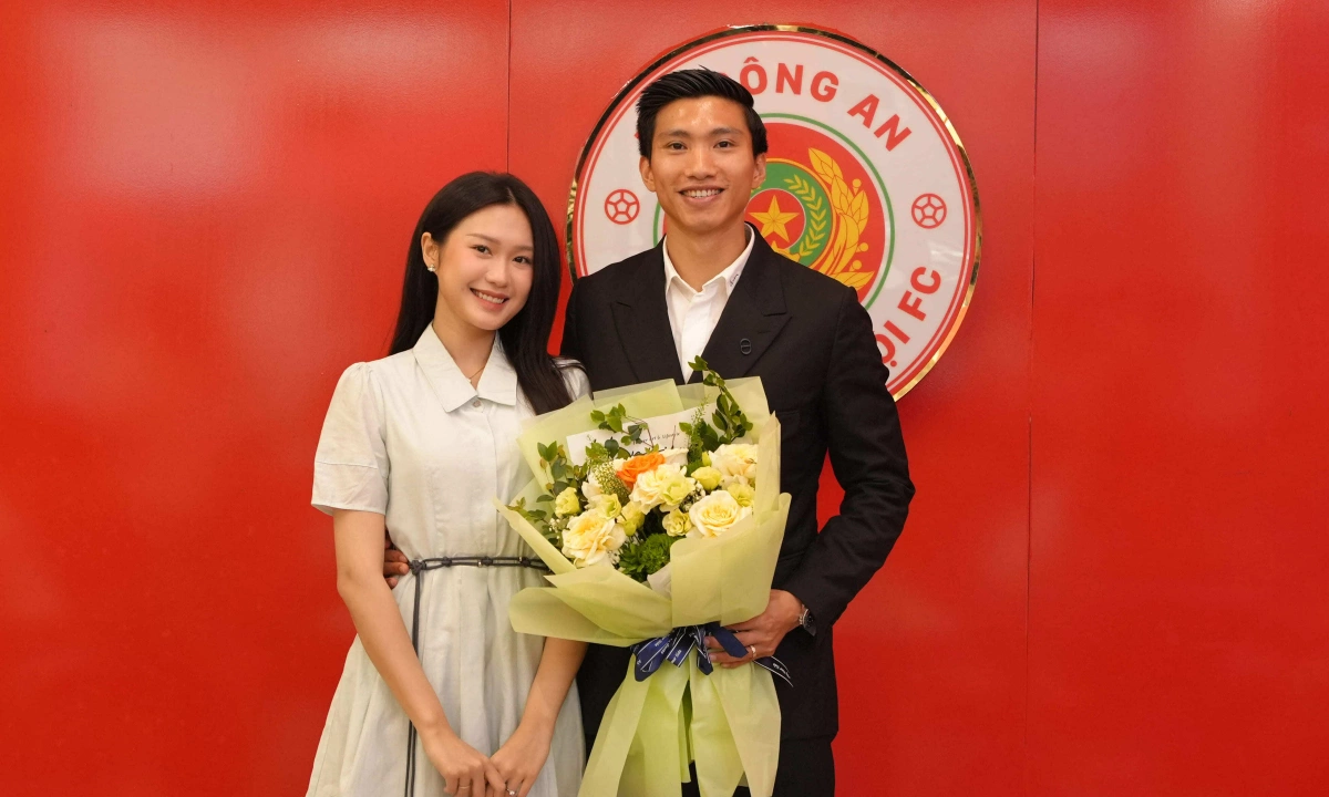 | Doãn Hải My tươi tắn bên Đoàn Văn Hậu trong ngày gia hạn hợp đồng với CAHN | |