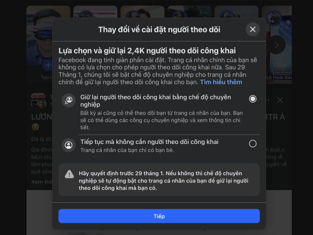 - Facebook “thúc giục“ người dùng cập nhật chế độ chuyên nghiệp 1 ngày trước