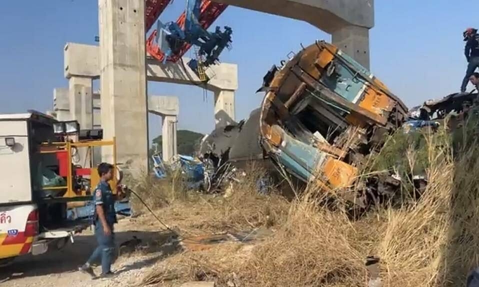 | Hiện trường vụ cần cẩu rơi trúng tàu hỏa Thái Lan | |