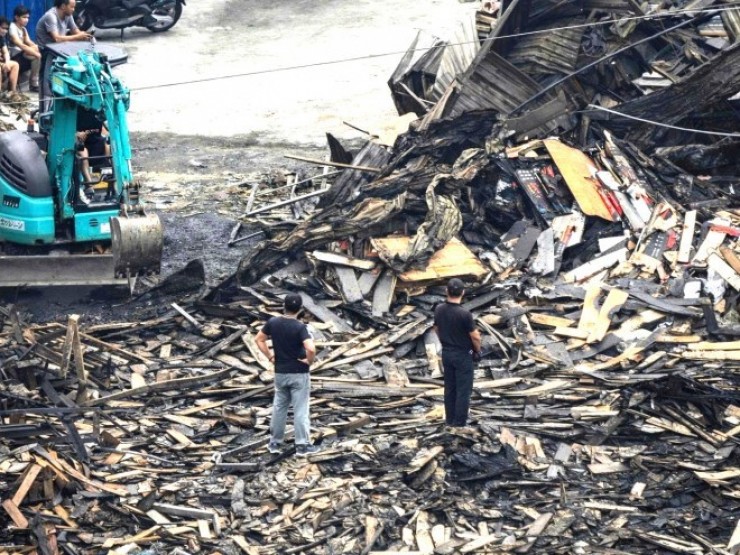 | Khung cảnh hoang tàn sau vụ cháy nhà xưởng ở Thanh Liệt, Hà Nội | |