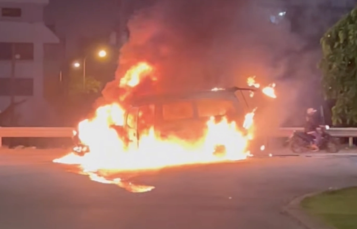 | Ôtô cháy ngùn ngụt trước khu dân cư ở TP HCM | |