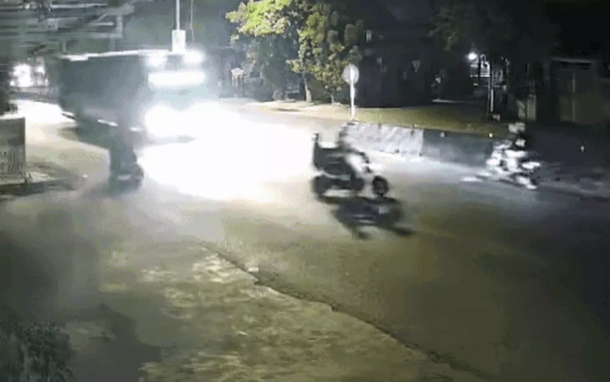 | Qua đường ẩu, hai người thoát chết trước bánh xe khách | |