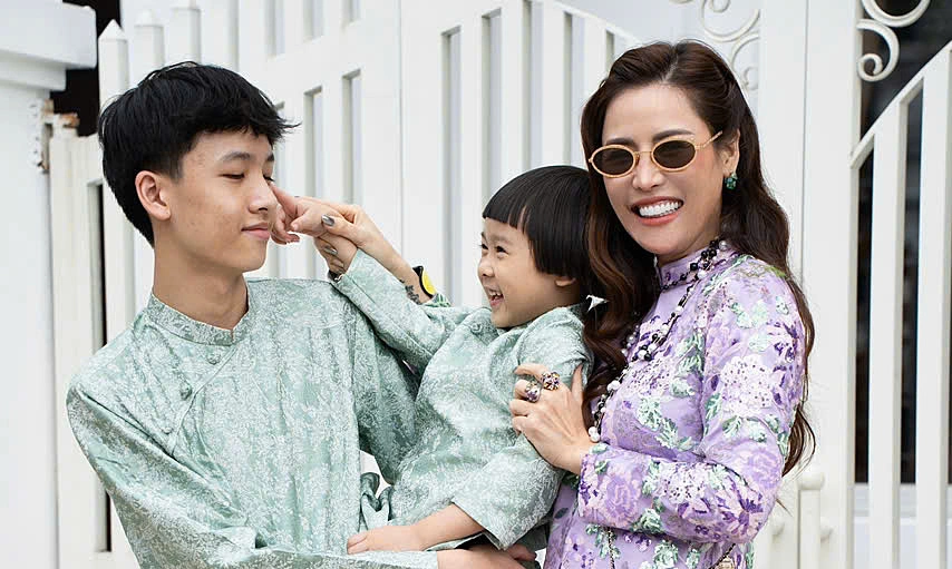 | Quế Vân và các con xúng xính áo dài xuống phố | |