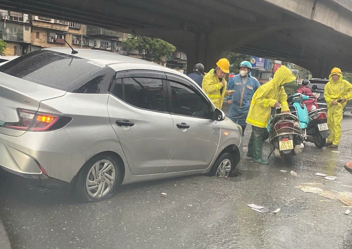 | Taxi sụt hố sâu trên đường Hà Nội | |