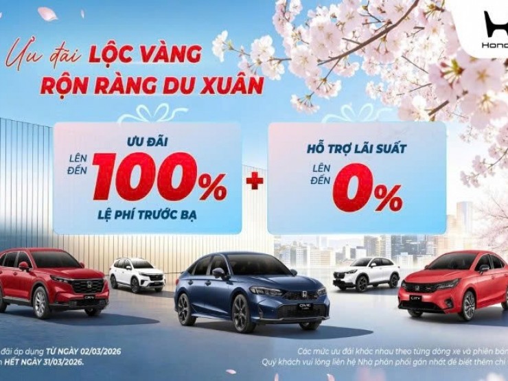 ![]() | Chào đón năm mới, với mong muốn mang đến nhiều hơn nữa cơ hội trải nghiệm các mẫu xe ô tô Honda và tận hưởng những khoảnh khắc du ngoạn tuyệt vời cho Khách hàng, Honda Việt Nam (HVN) phối hợp cùng hệ thống Nhà Phân phối triển khai chương trình khuyến mại hấp dẫn từ ngày 01 tháng 03 năm 2026 đến hết ngày 31 tháng 03 năm 2026....Xem tiếp>>> |
