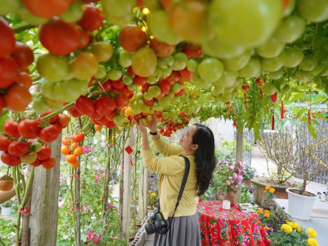| Vườn cà chua “đẹp như AI“, hút hàng nghìn khách check-in đầu xuân | |