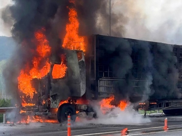 | Xe đầu kéo cháy rụi trên cao tốc | |