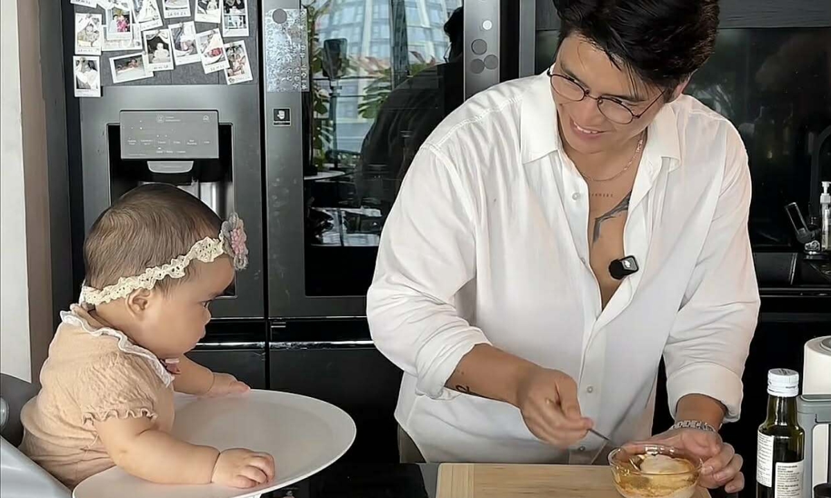 | Ảnh sao 8/3: Con gái 6 tháng tuổi ngồi xem Huy Trần nấu ăn | |