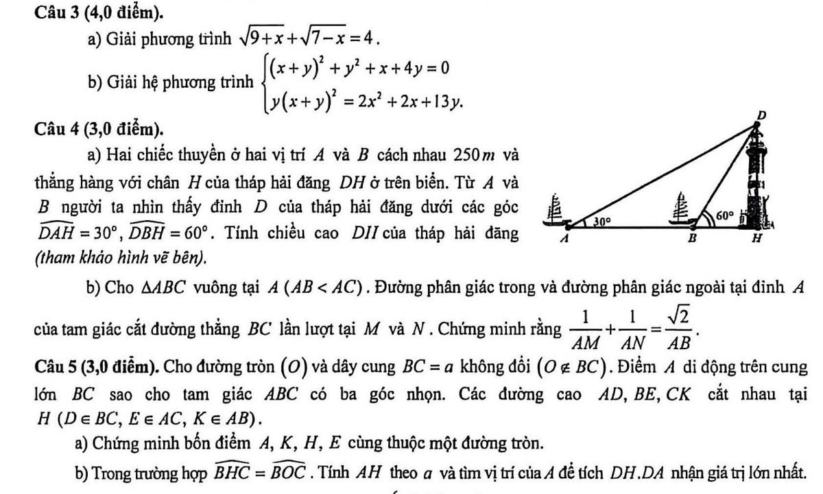 | Đề thi, đáp án môn Toán thi học sinh giỏi lớp 9 tỉnh Hưng Yên | |