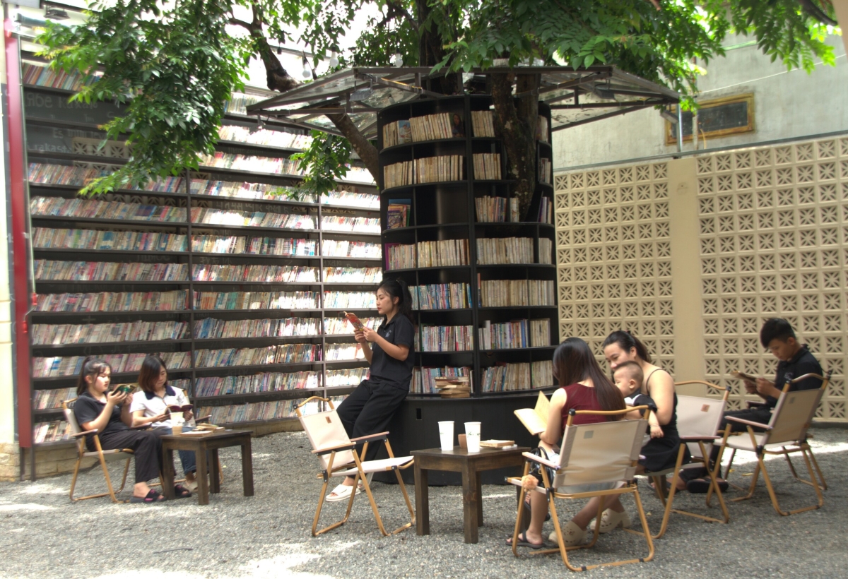 | Quán cà phê có bức tường dựng từ 7.500 cuốn sách | |