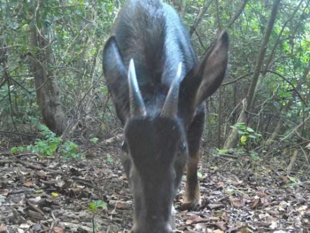 | Trong một khu rừng của tỉnh Ninh Bình, phát hiện hai mẹ con loài sơn dương đang đi dạo | |