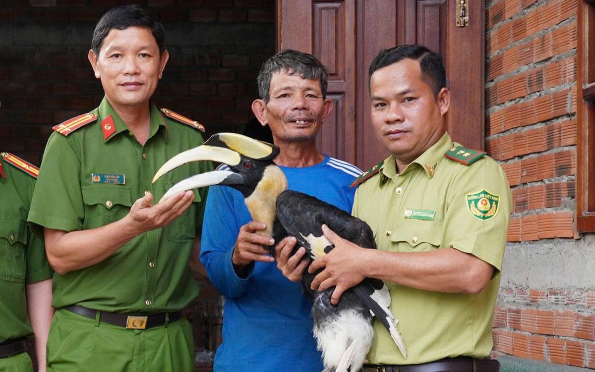 | Chim hồng hoàng nặng 2,5kg bay vào ruộng lác của người dân ở Tây Ninh | |