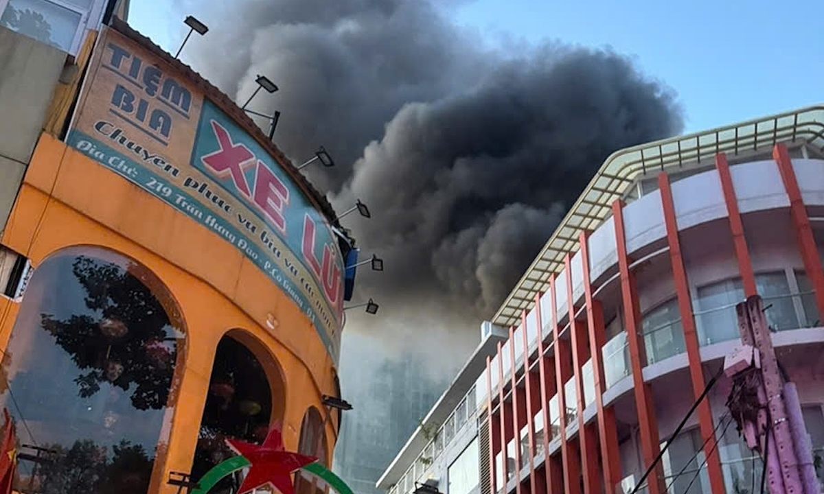| Cháy quán bún ốc trên đường Trần Hưng Đạo, cảnh sát điều xe thang cứu 5 người mắc kẹt | |