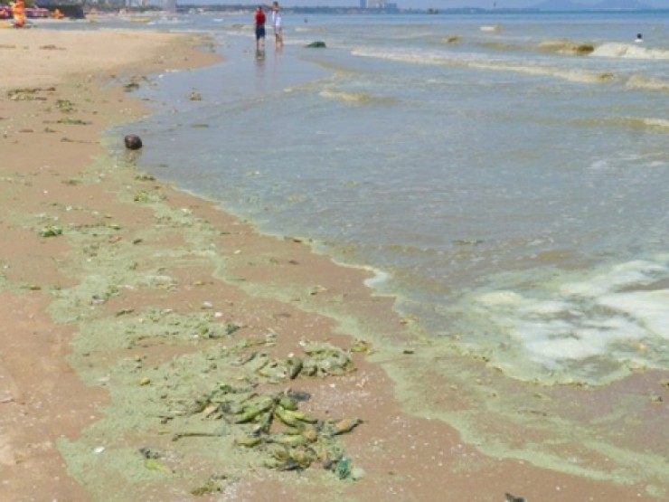 | Nước biển ở Vũng Tàu đổi màu xanh, tím nghi do vi tảo | |