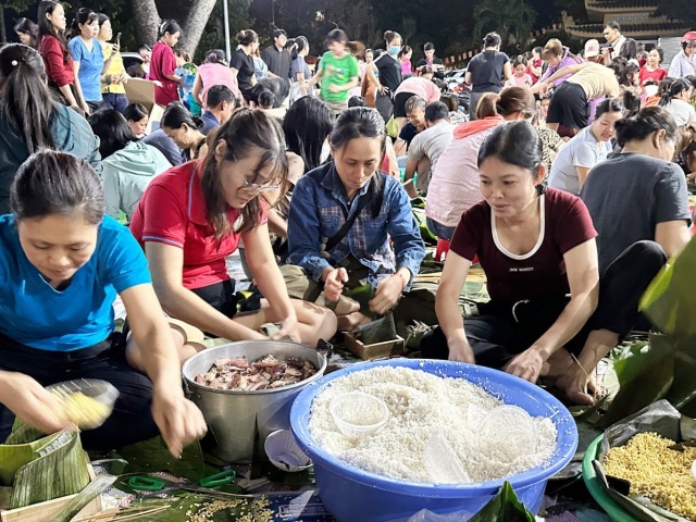 | Hàng trăm người xuyên đêm gói bánh chưng, bánh tét gửi đồng bào vùng lũ | |