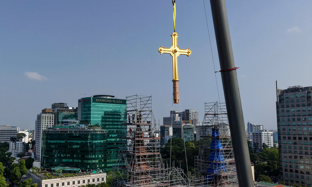 | Lắp thánh giá lên tháp cao 57 m Nhà thờ Đức Bà Sài Gòn | |