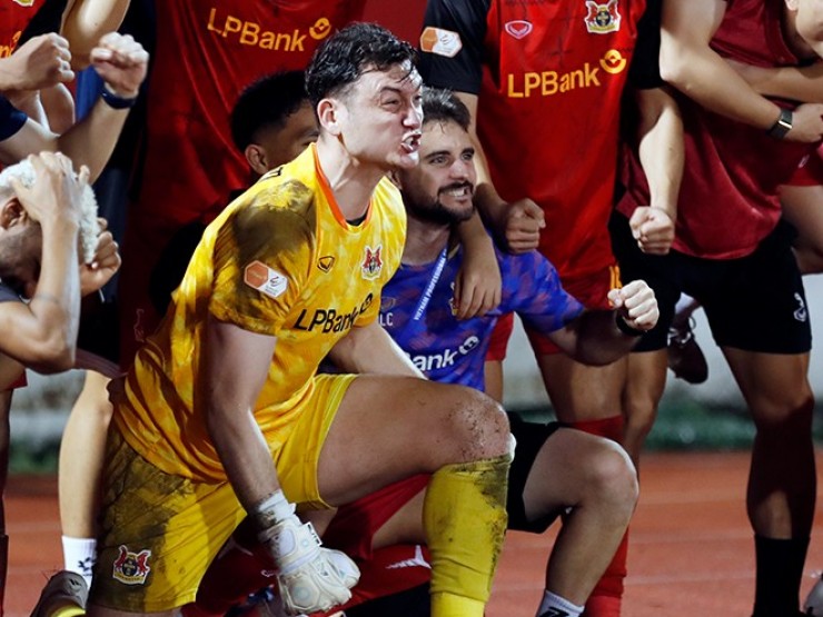 | Văn Lâm - Hoàng Đức ăn mừng như vô địch V-League khi thắng đội Tiến Linh | |