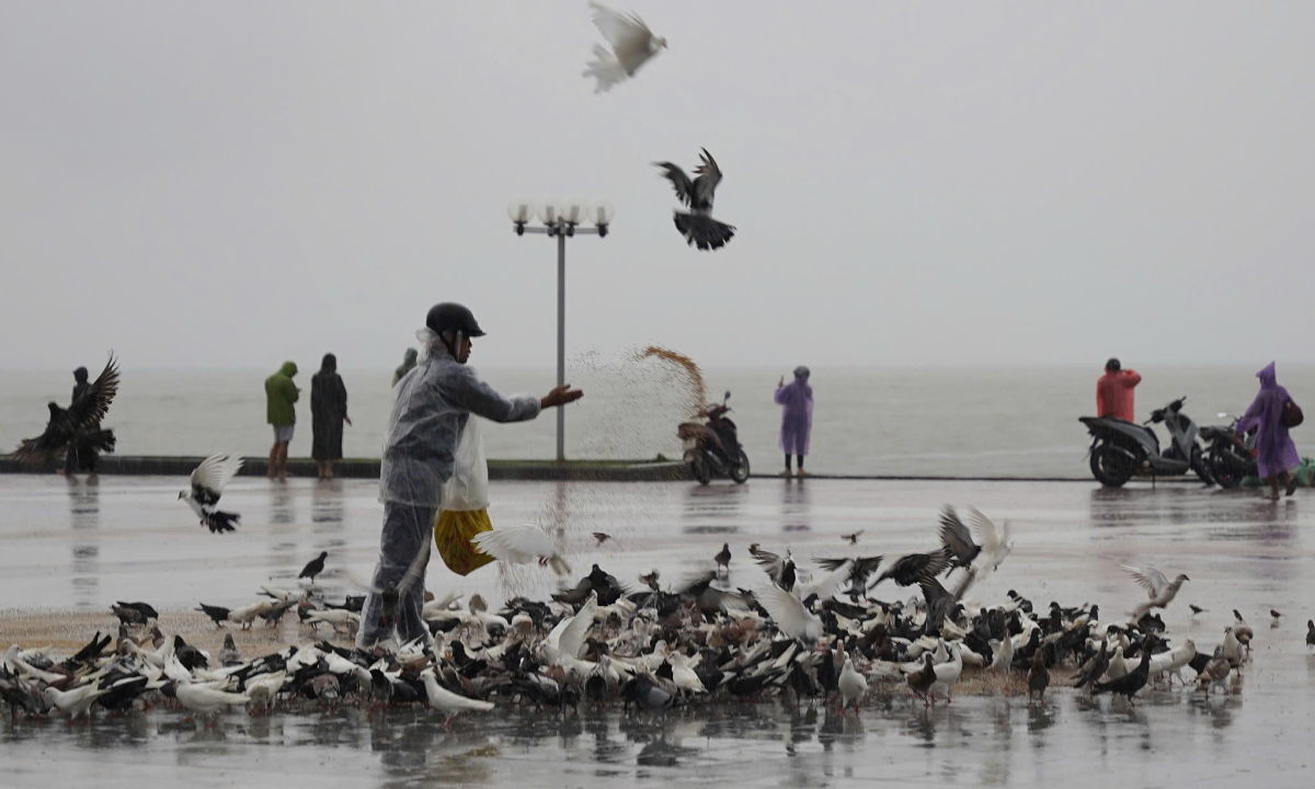 | Du khách, người dân ngắm biển Nha Trang trước bão | |