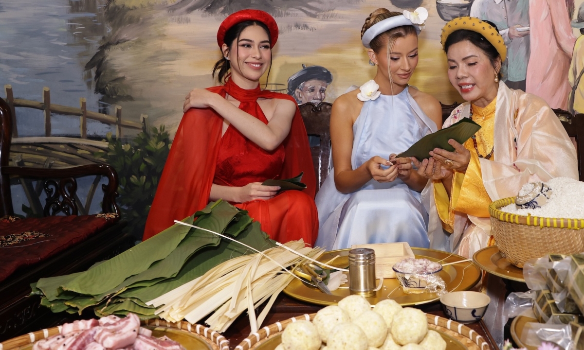 | Hoa hậu Mỹ chơi đập niêu, gói bánh chưng | |