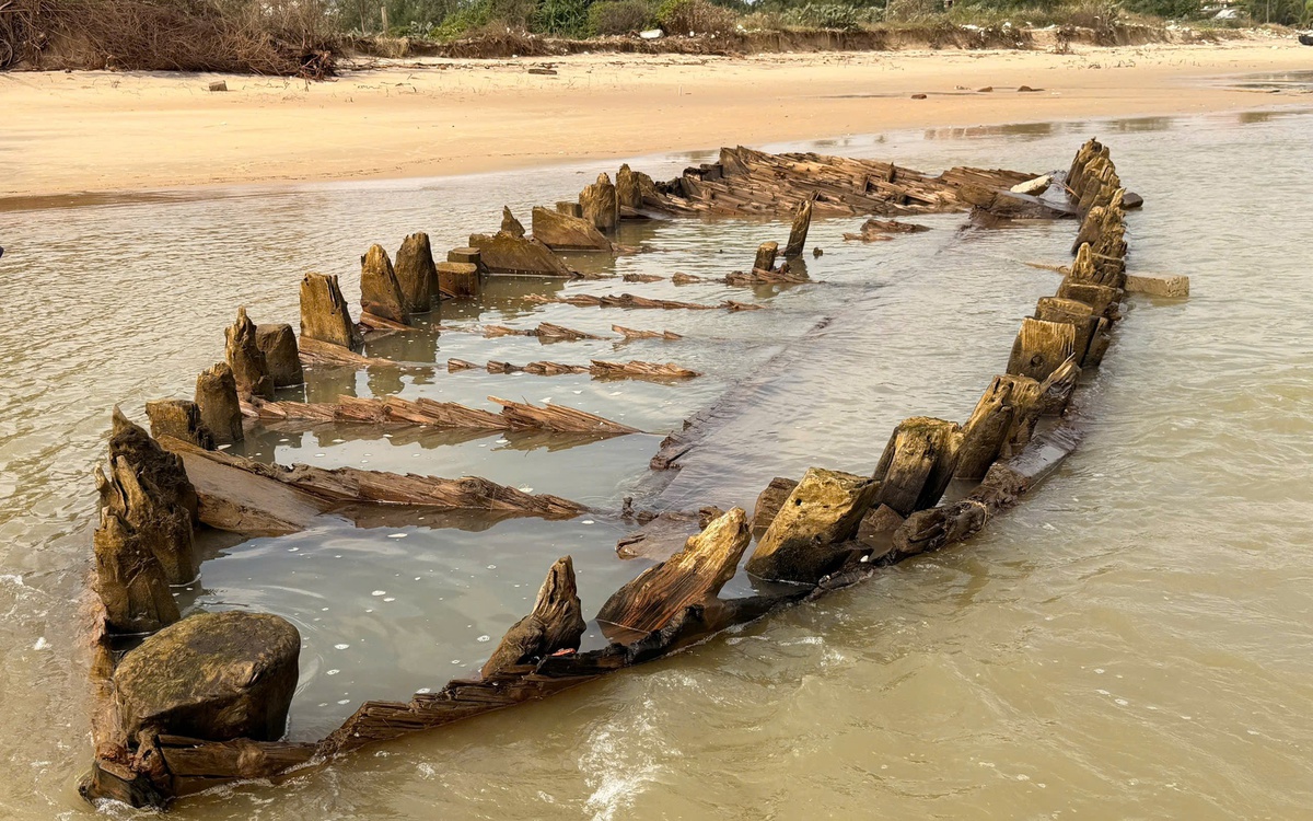 | Tàu cổ Hội An lại 'mất dấu' sau ít giờ phát lộ trên bãi cát | |